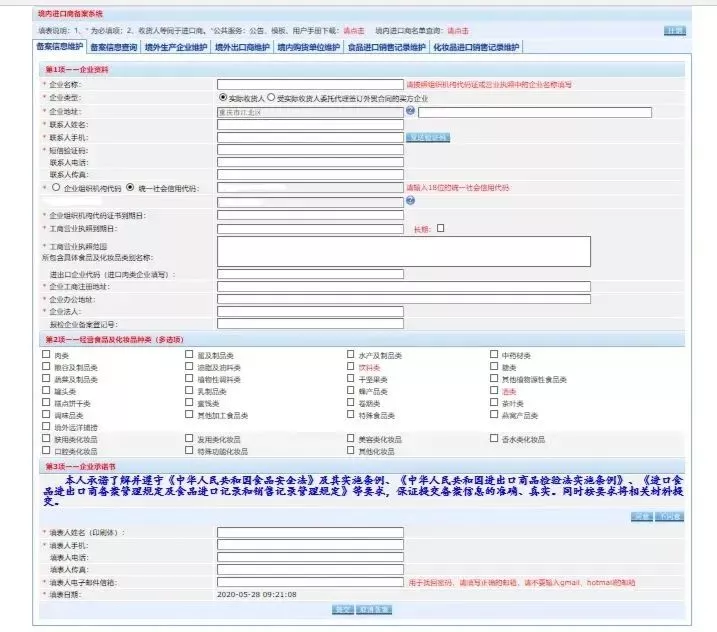 进口食品收货人(进口商)备案流程