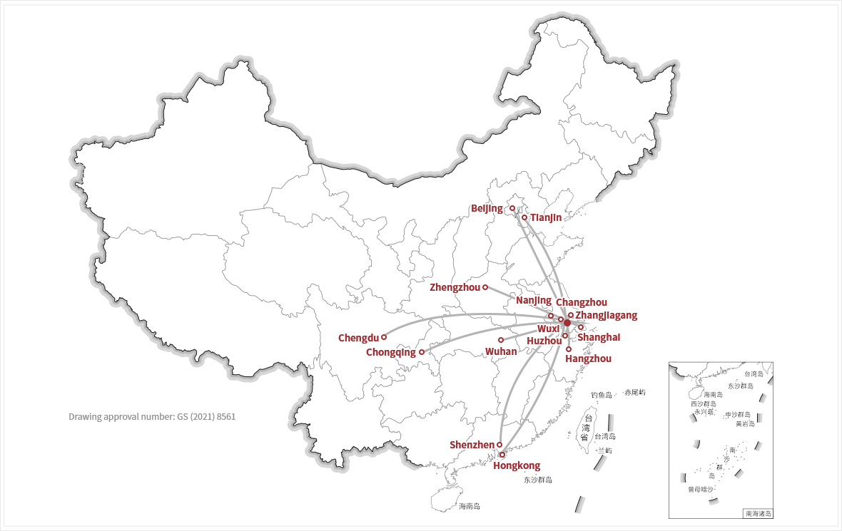01Nationwide domestic air transport network with base in Wuxi, Nanjing and Shanghai Airports